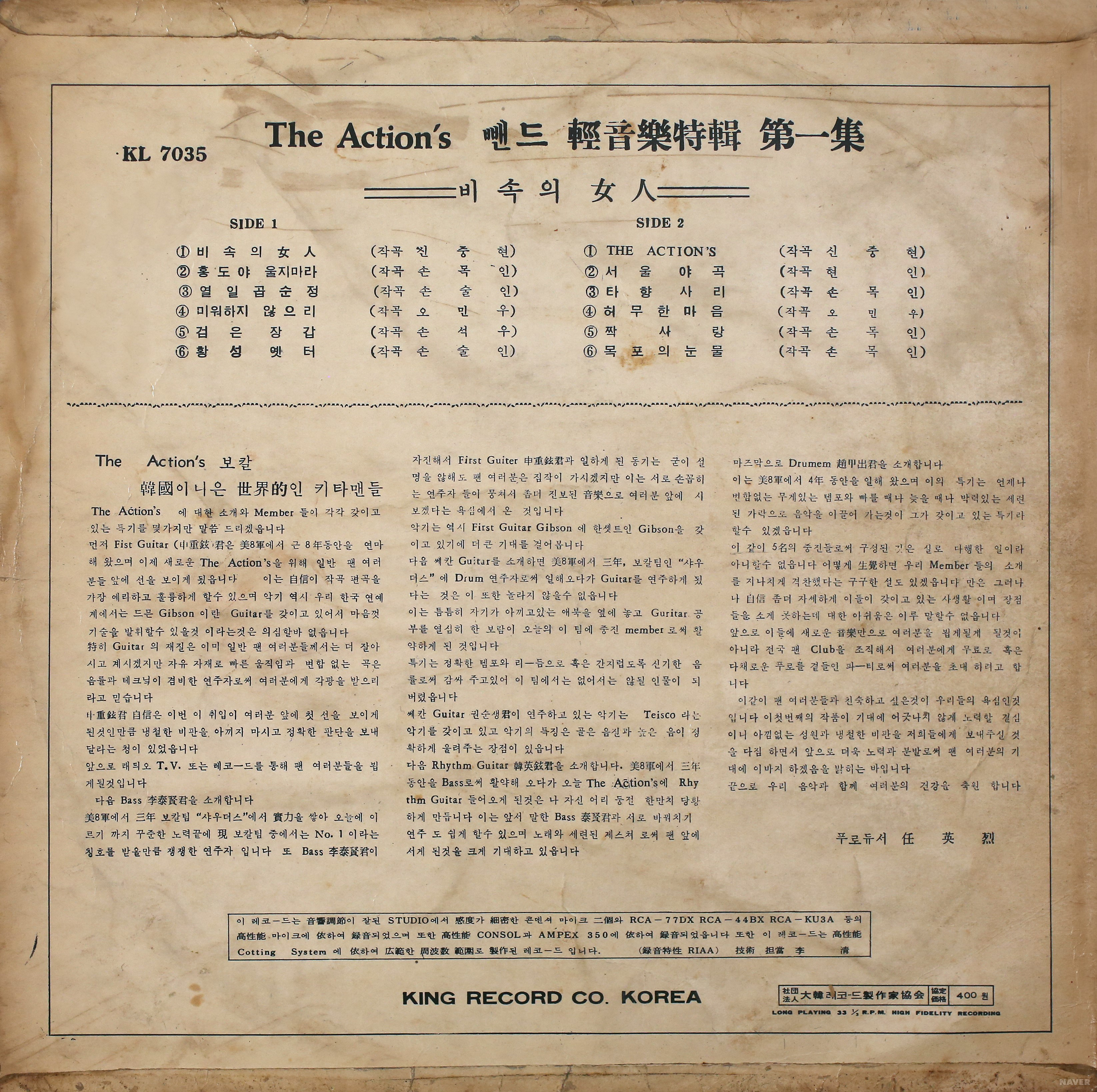 Below is the only known pressing of the only known album by The Actions.