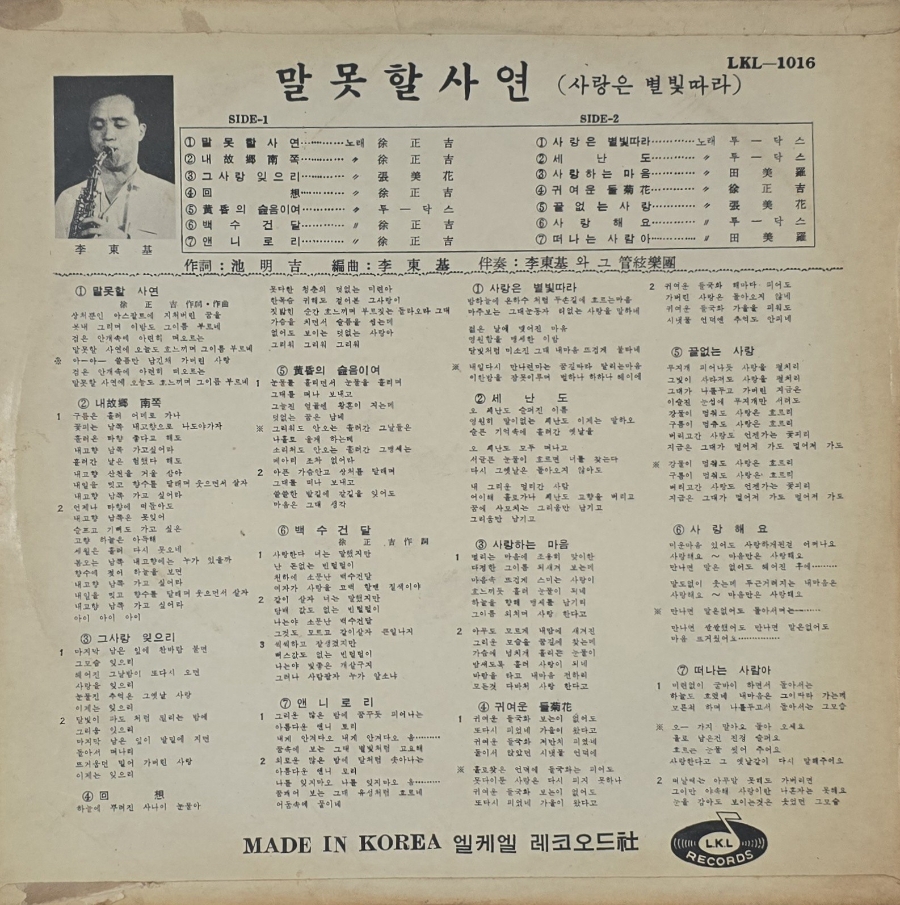 Below is the only known pressing of Lee Dong Ki Band's Unspeakable Story (말못할 사연).