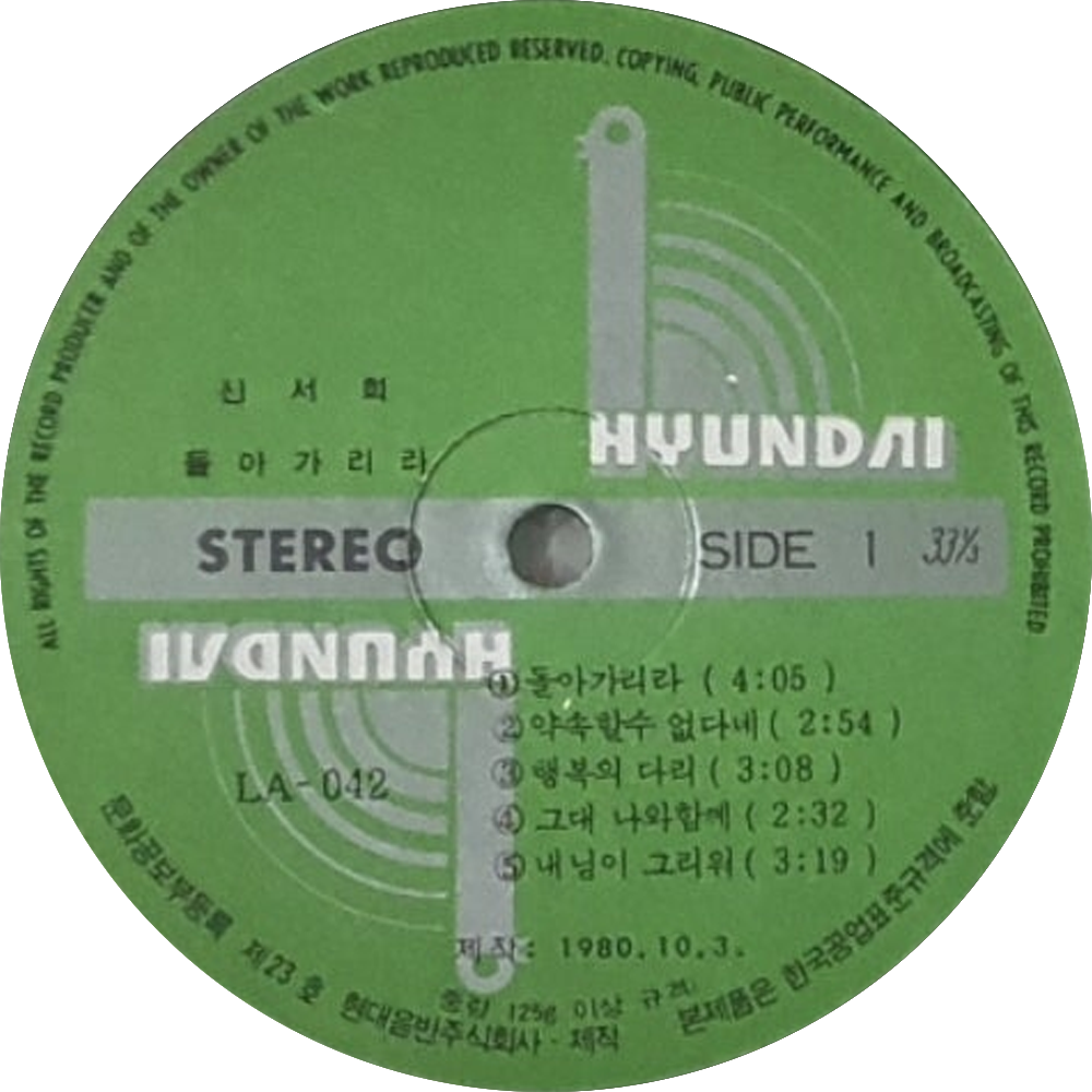 A list of all known unique pressings of He6's album with Shin Suh Hee, I Will Go Back (돌아가리라).