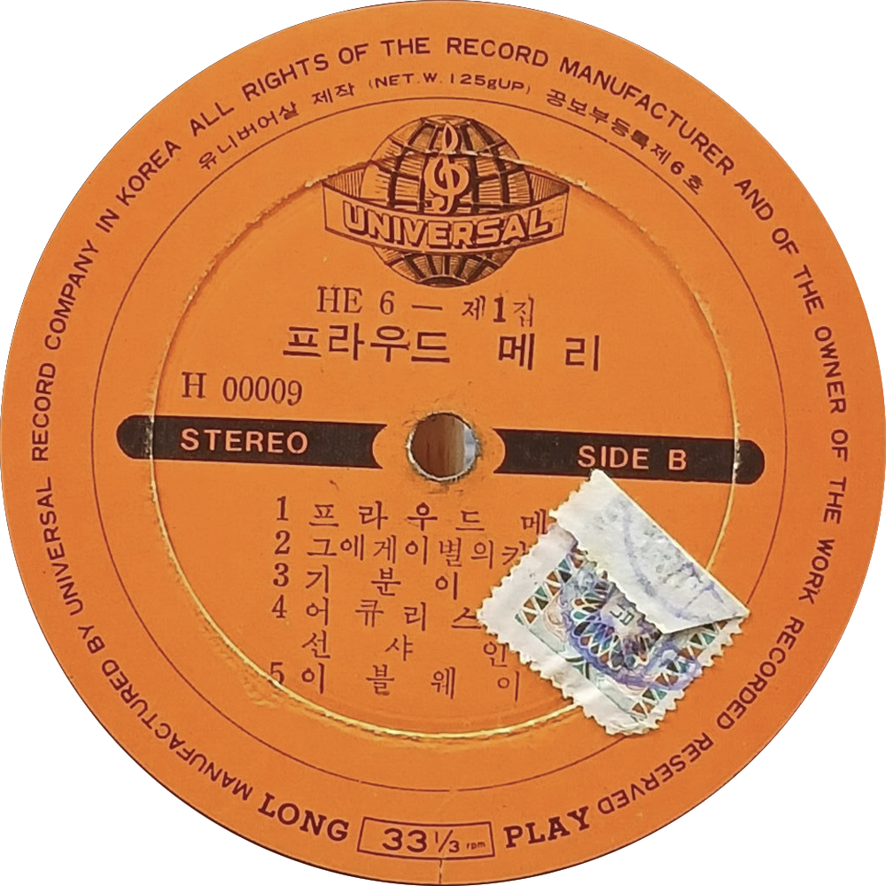 4th pressing. Grand Records logo in the bottom right corner changes to a Universal Records logo. |
