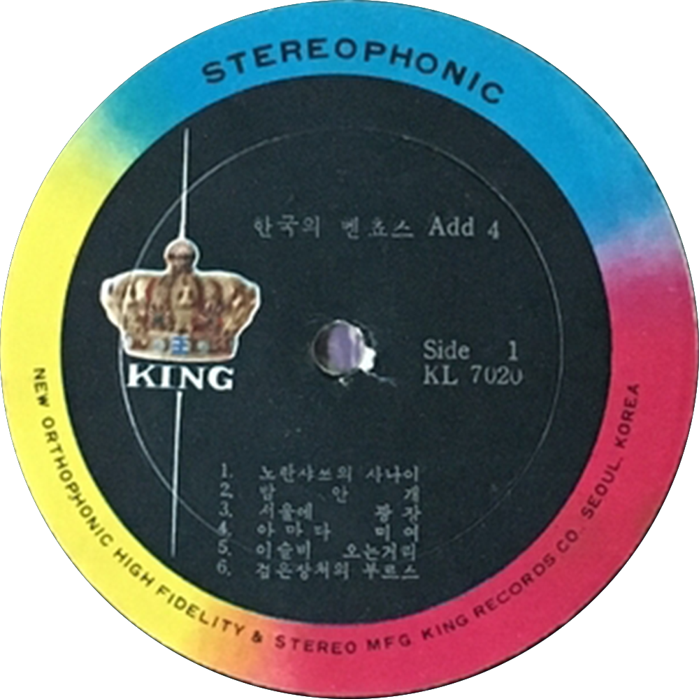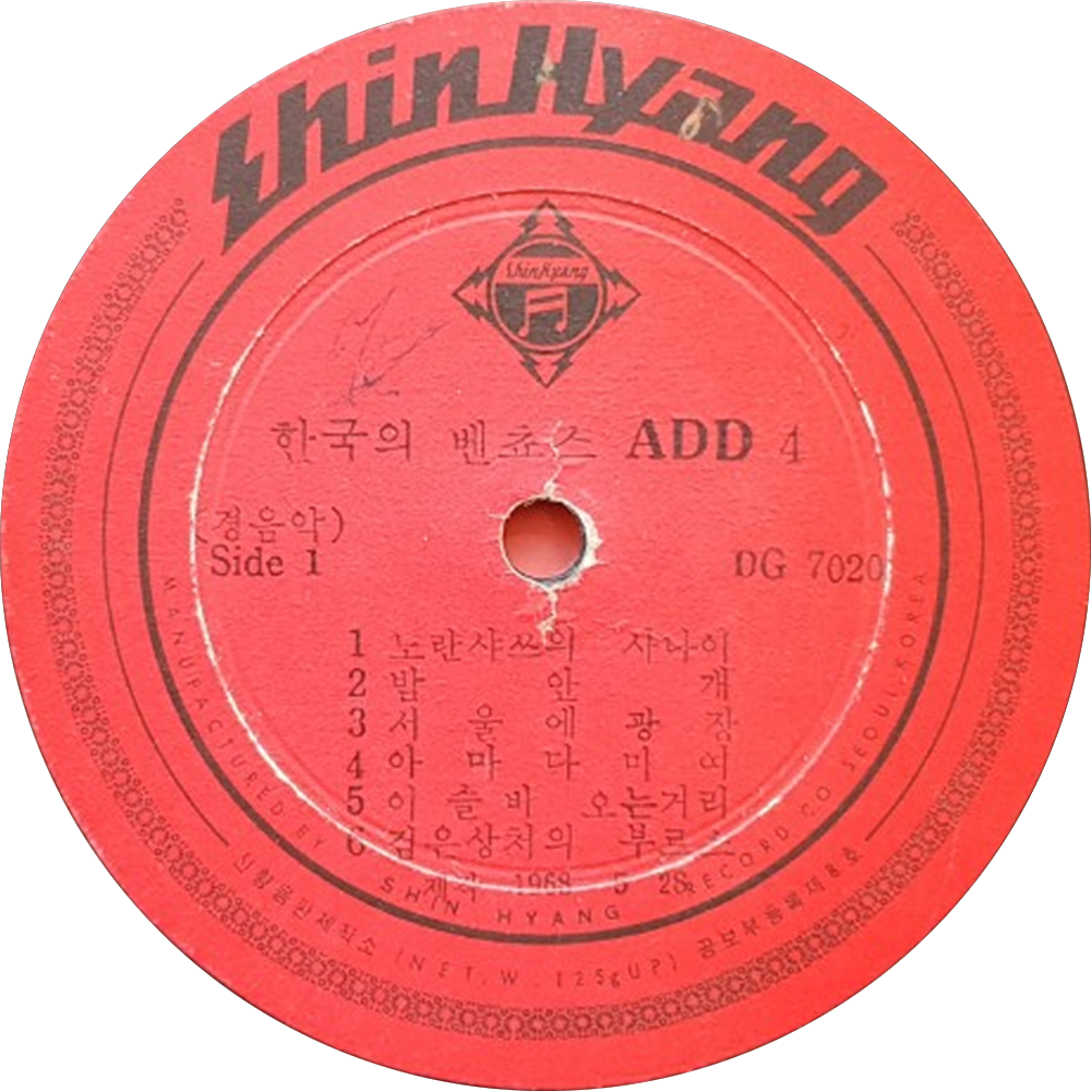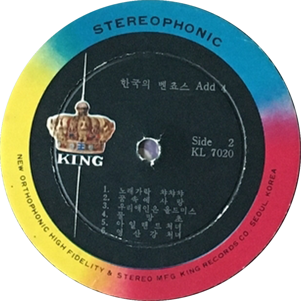 Label variation on the 1st pressings. Featured "Dae Ji" text on the label instead of the King Records logo. |