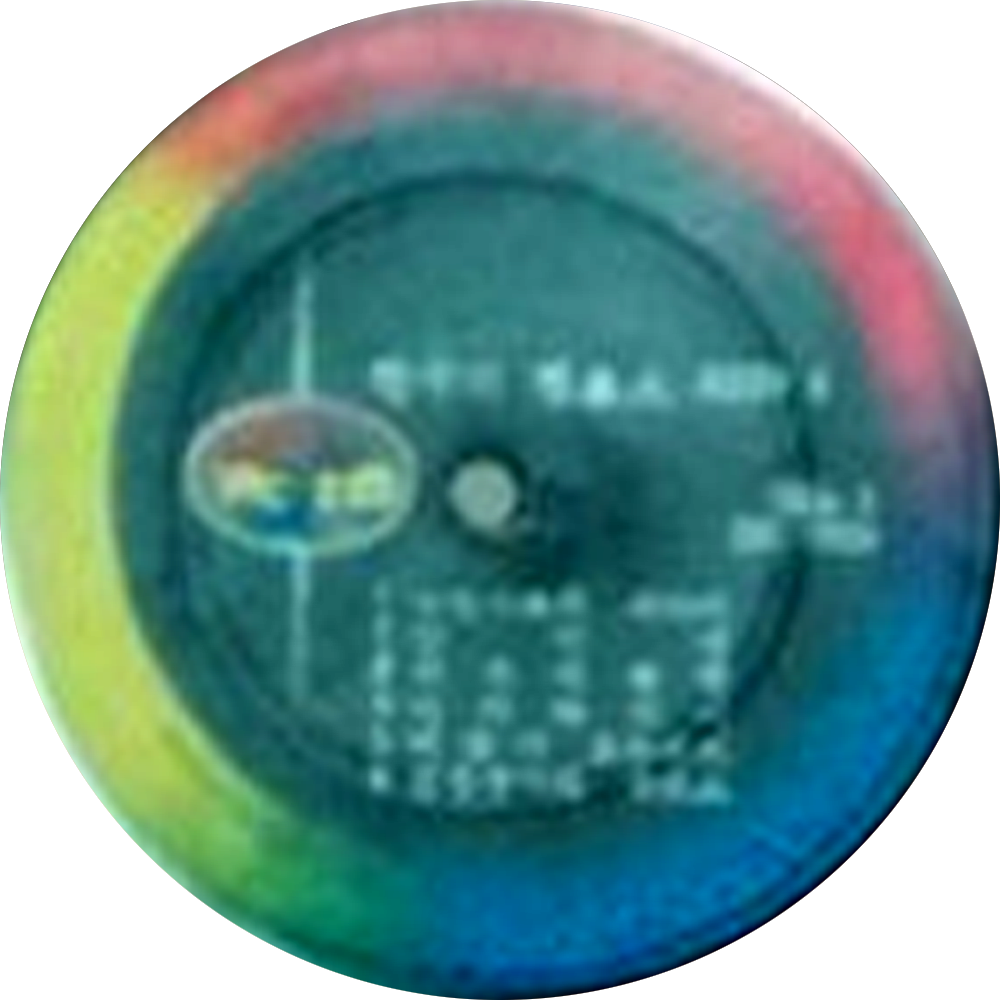 Variation on the 1st pressings. Features blue and red text on the top instead of red and green. |